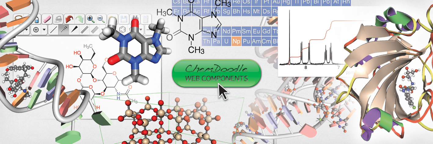 I looked at creating an ebook with iBooks author, but ultimately preferred the web as a platform because of the number of tools I could leverage and because it enabled broader distribution. To display molecular graphics I used ChemDoodle Web Components (CWC), a javascript library for chemical graphics, interfaces and informatics. Following the conclusion of this project I wrote a review of CWC which was published in the Journal of Cheminformatics (Figure 1).
